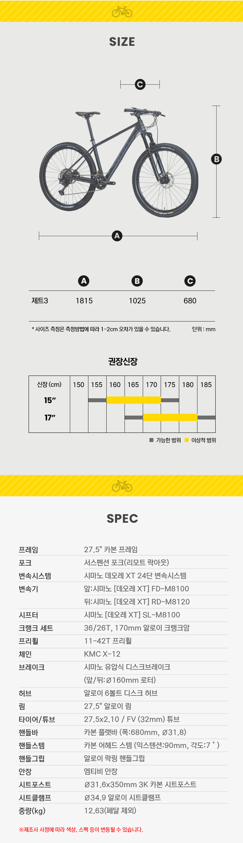 | 크기, 중량 | 27.5인치 (15) (17) | ||