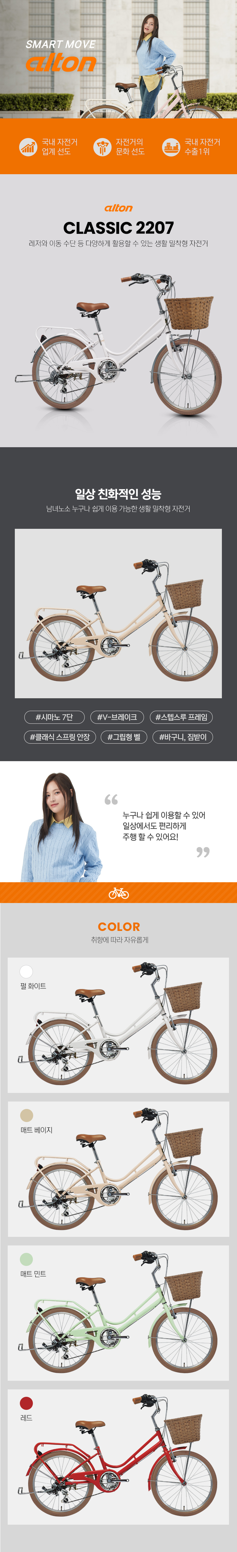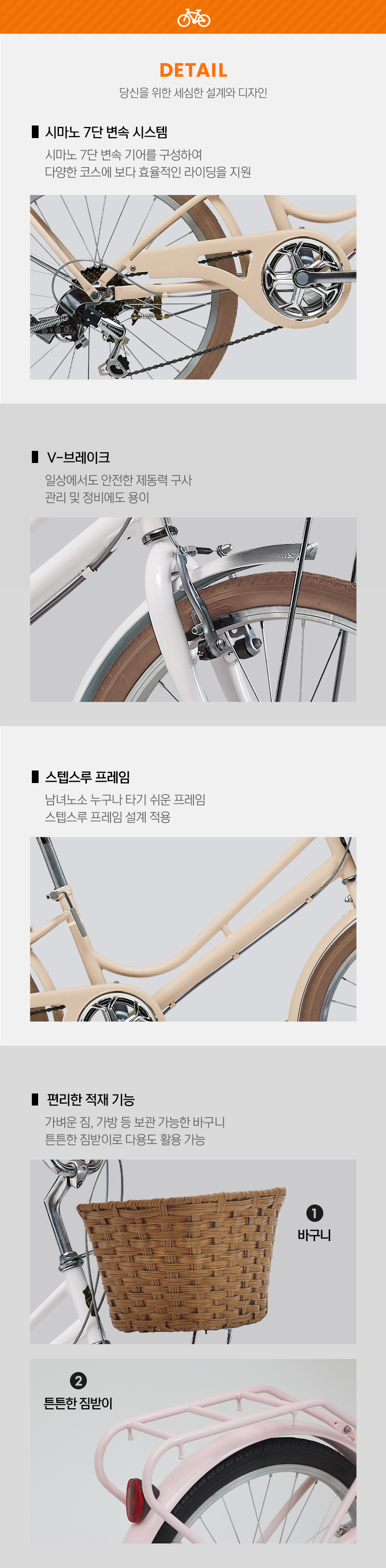 | 상품별 세부 사양 | 스탭스루 프레임시마노 7단시마노 레보 시프터알로이 퀼 스템 | ||
