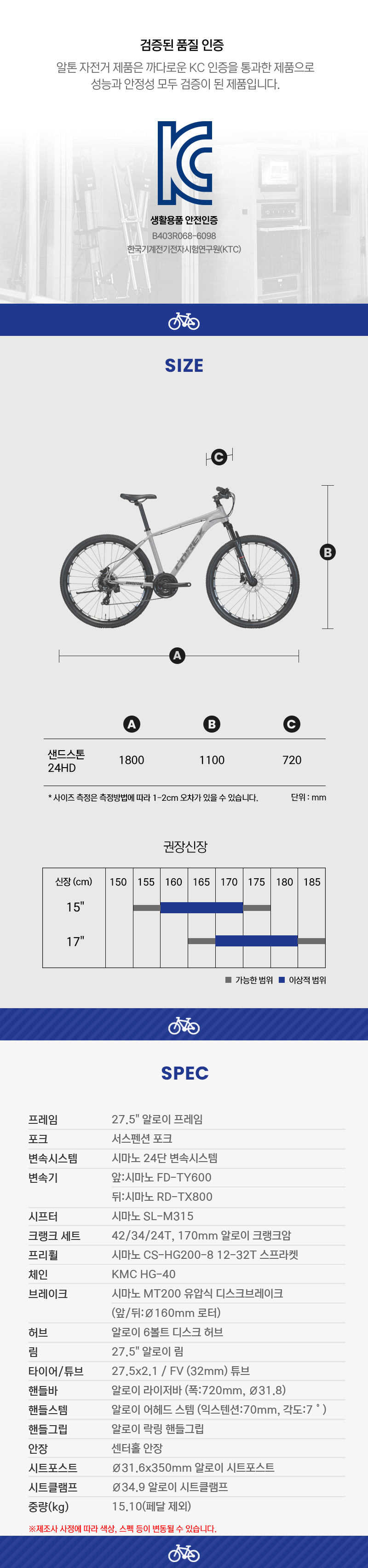 단, 소모성 부속은(튜브, 타이어, 브레이크 패드, 체인 등) 제품 보증 대상에서 제외됩니다.