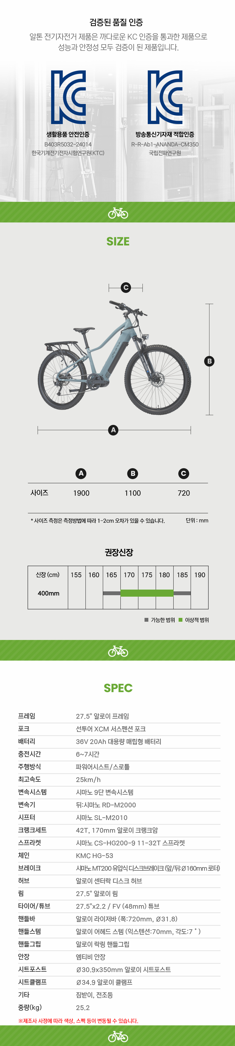단, 소모성 부속은(튜브, 타이어, 브레이크 패드, 체인 등) 제품 보증 대상에서 제외됩니다.