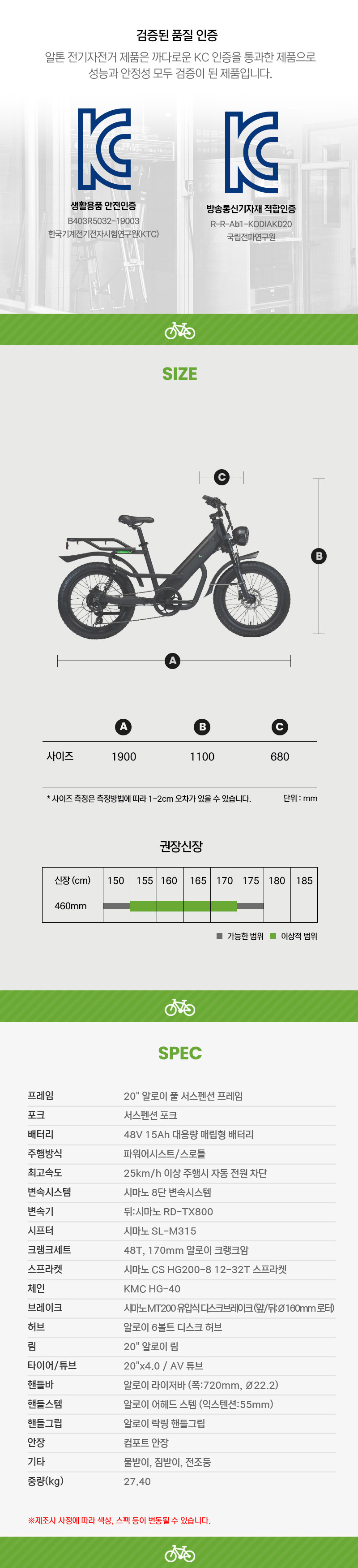 품명 및 모델명 KODIAK T20(500W/48V)(PAS&THROTTLE)전기자전거