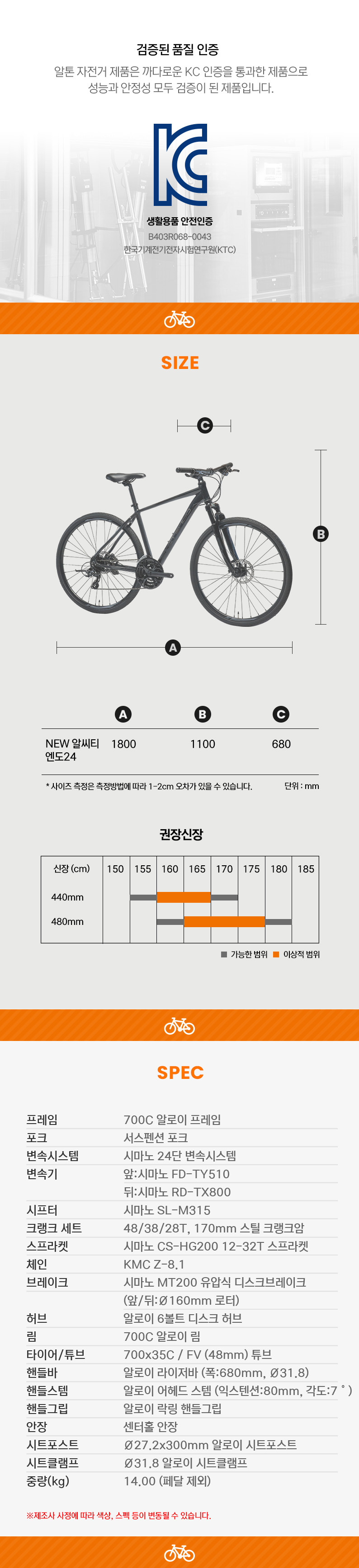 단, 소모성 부속은(튜브, 타이어, 브레이크 패드, 체인 등) 제품 보증 대상에서 제외됩니다.