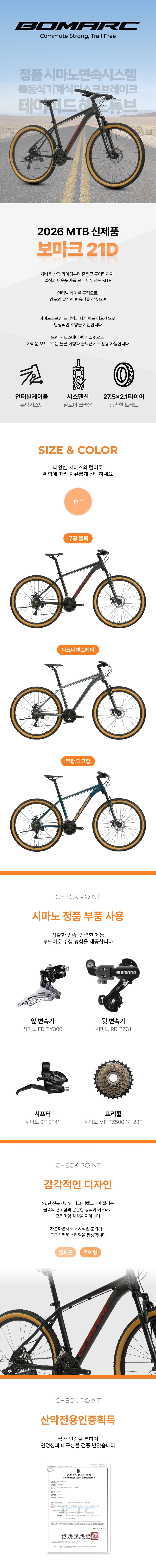 단, 소모성 부속은(튜브, 타이어, 브레이크 패드, 체인 등) 제품 보증 대상에서 제외됩니다.